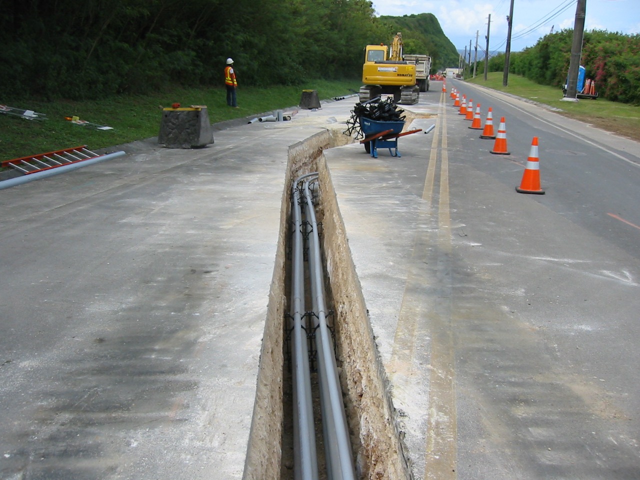 - Instalação de linhas de dutos e caixas subterrâneas
